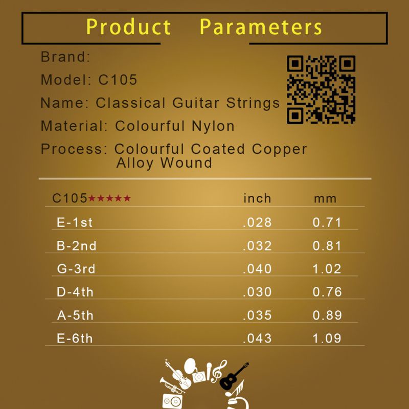 Gói 6, Dây đàn Guitar cổ điển IRIN C105 Lõi Nylon Đồng tráng đầy màu sắc Thương hiệu mới và chất lượng cao .