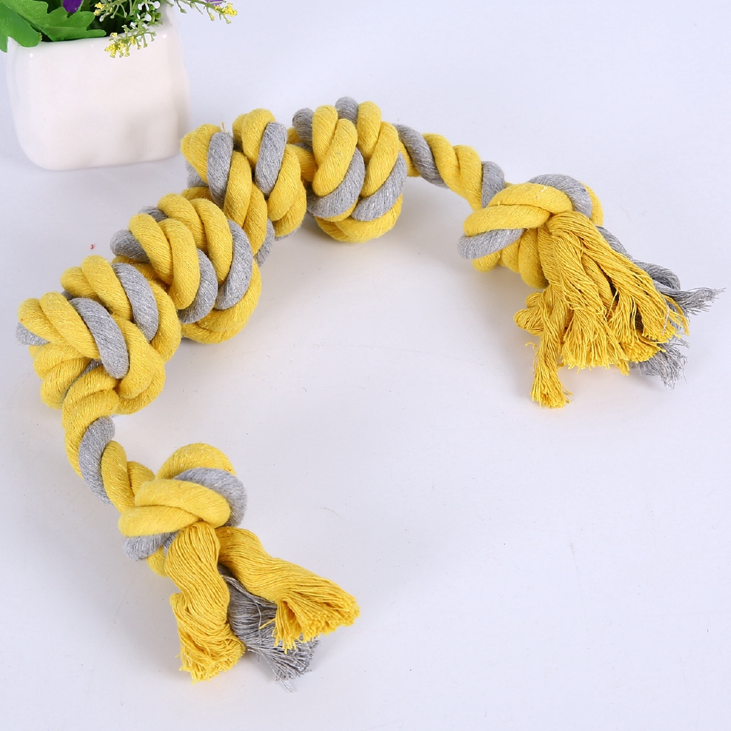 [Large rope toy]: Our dog toy has a length of 58 cm and a weight of 350 grams, which is specially designed for large dogs. It is very suitable for pulling or training chewing. With this toy, your dog will no longer be bored and avoid damaging the furniture. [Safe and non-toxic]: Our dog leash toys are made of natural cotton fiber, which is washable and harmless to the jaws. Non-toxic cotton can clean teeth and Massage gums, help resist the formation of plaque and prevent gum disease. Don't hesitate to buy a safe toy for your dog. [Super strong structure]: The large dog leash toy has 6 strong knots, which is not easy to tear and damage. This will awaken the dog's hunting instinct and relax them. Even if the strings are slightly broken, it can be used to play until you get value for money. [Improve relationship]: If you have two dogs, congratulations, they can play gunfights together to give you peace of mind. Otherwise, you can play with four-legged friends. This will greatly improve the relationship between you and your dog.