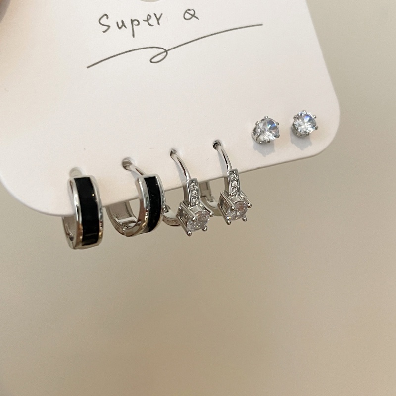 Giới thiệu Set 6 Khuyên Tai Tròn Mạ Bạc 925 Đính Đá Zircon Lấp Lánh Thời Trang Cho Nữ Y2K