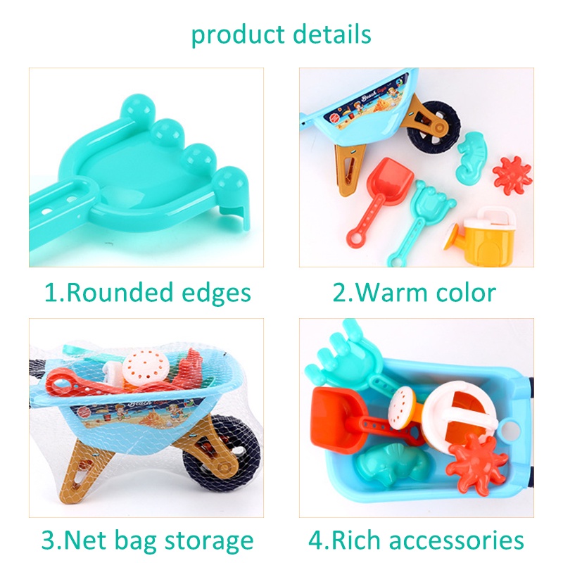 1. Đồ chơi bãi biển trẻ em Kích thước phù hợp với bàn tay nhỏ của bé cầm nắm, phù hợp với đường viền cơ thể người, giúp bé dễ dàng cầm và chơi thoải mái 2. Xe lưu trữ Hãy là một "vua xử lý" mạnh mẽ trên bãi biển và tham gia vào toàn bộ dây chuyền vận chuyển cho công trình xây dựng lâu đài bãi biển của trẻ em giao hàng 3. Phụ kiện đa dạng Chơi với nước cũng là sân nhà của chúng tôi, giúp việc tắm và chơi trong nước tràn đầy niềm vui, và các màu sắc mới khiến mùa hè trở nên mát mẻ hơn 4. Đẩy về phía trước thuận lợi Viền nhẵn và không có gờ, không làm đau tay bé, bàn tay cho cảm giác mịn và mịn, kích thước cầm nắm và có độ cong vừa phải 5. Màu ấm và mềm Màu sắc phù hợp hơn cho nhận thức của trẻ sơ sinh từ hàng trăm triệu thư viện màu sắc, để các bé nhận thức về màu sắc bắt đầu từ sự thoải mái