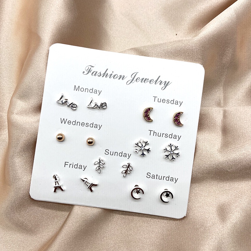 Giới thiệu Set 7 đôi bông tai hình hoa/ mặt trăng kiểu dáng đơn giản dễ thương thời trang Nhật Hàn