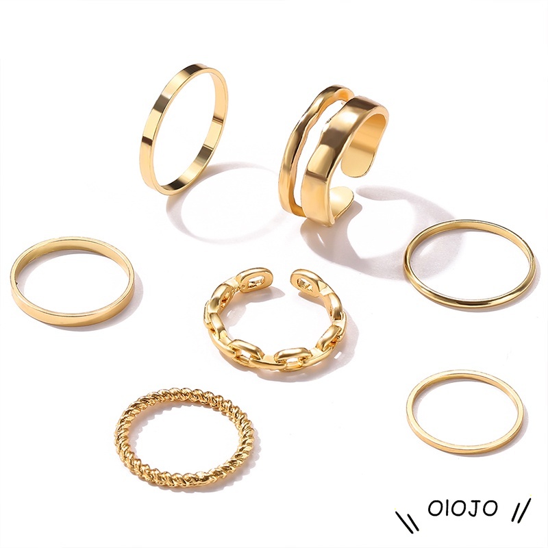 Thông tin cụ thể: Tên sản phẩm: 7 chiếc / bộ nhẫn chuỗi vàng dạng mở kiểu Hàn Quốc Chất liệu: hợp kim Màu sắc: như hình Phong cách: đơn giản & hợp thời trang Các dịp thích hợp: tiệc, sinh nhật, quà tặng Số lượng: 7 chiếc / bộ nhẫn Kích thước: 7 x 5x 0.5cm