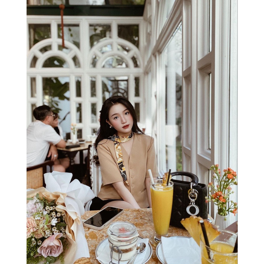 ÁO: - Size: S: 44 - 50 kg M: 50 - 56 kg L: 56 - 62 kg - Chất liệu vải áo: Tuyết mưa (vải dày dặn, đứng form, thoải mái). - Chất liệu lót: Chiffon lụa (Mềm, mịn mát). - Chất liệu Mex: Conbel Mex (Được ép toàn bộ phần nẹp khuy ngực, cổ áo tạo độ đứng vải và giữ form). - Thiết kế: Dáng blazer lửng, 2 lớp, có mút độn vai, vạt áo phối 4 cúc bọc vải.