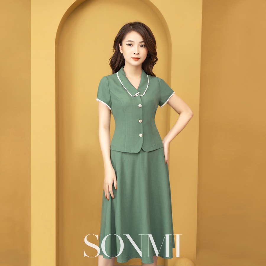 Giới thiệu Set Áo Chân Váy Công Sở SONMI Hàn Quốc Màu Xanh Rêu Và Đỏ Đun HARPER ELLA