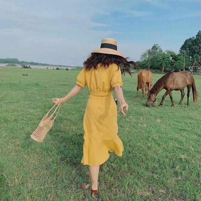 Thời Trang Nữ > Đầm/Váy > Set áo crop gài nút váy đuôi cá vàng mơ