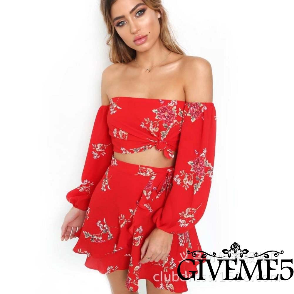 Giới thiệu Set áo croptop trễ vai + chân váy thời trang đi biển cho nữ