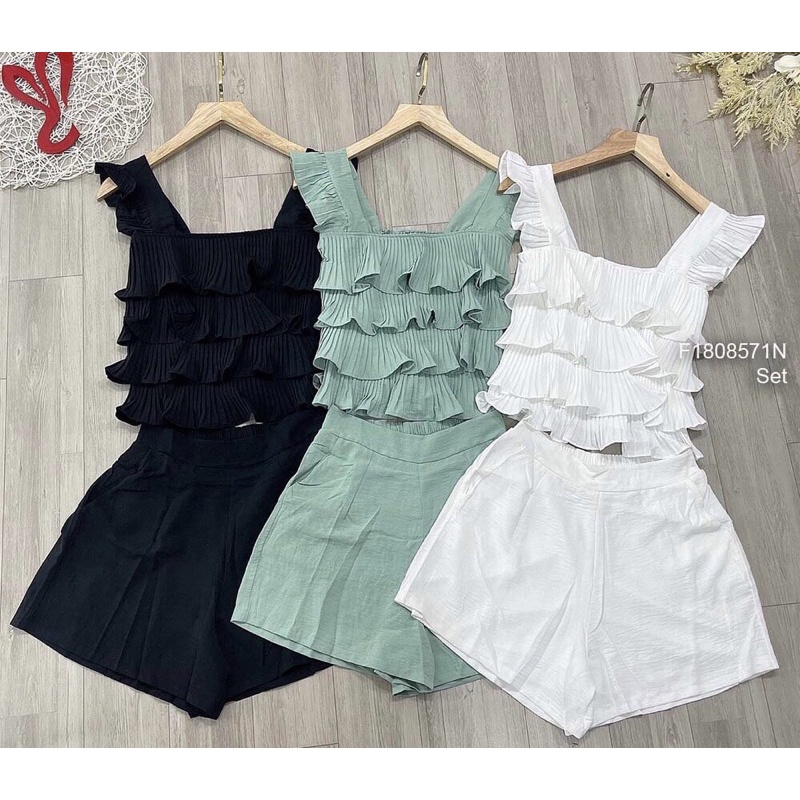 Giới thiệu Set áo croptop vạt đắp chéo sát nách kèm chân váy có lót