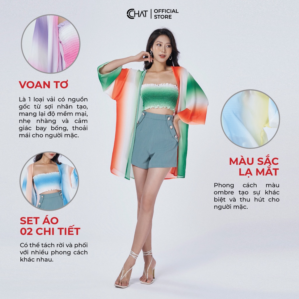 Giới thiệu Set Áo Crotop 𝐂𝐂𝐇𝐀𝐓 Kèm Khoác Ngoài Chất Voan Cao Cấp Phong Cách Trẻ Trung Nữ Tính 92ADV5001ST