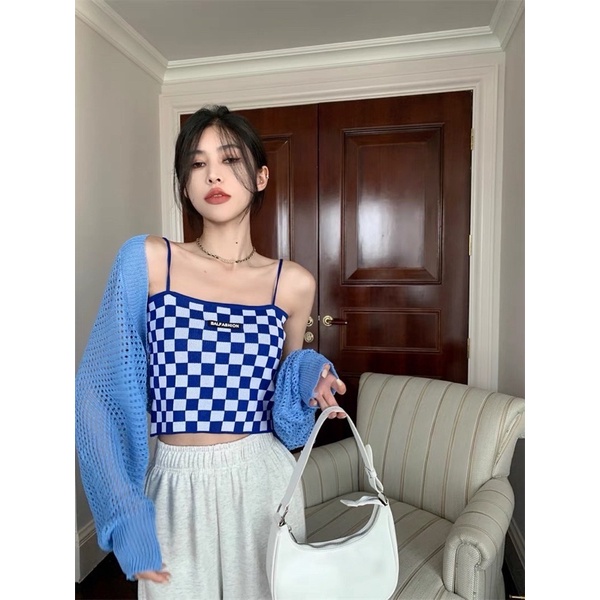 Giới thiệu set áo len lưới lửng mix dây len ô caro (27813-2#)