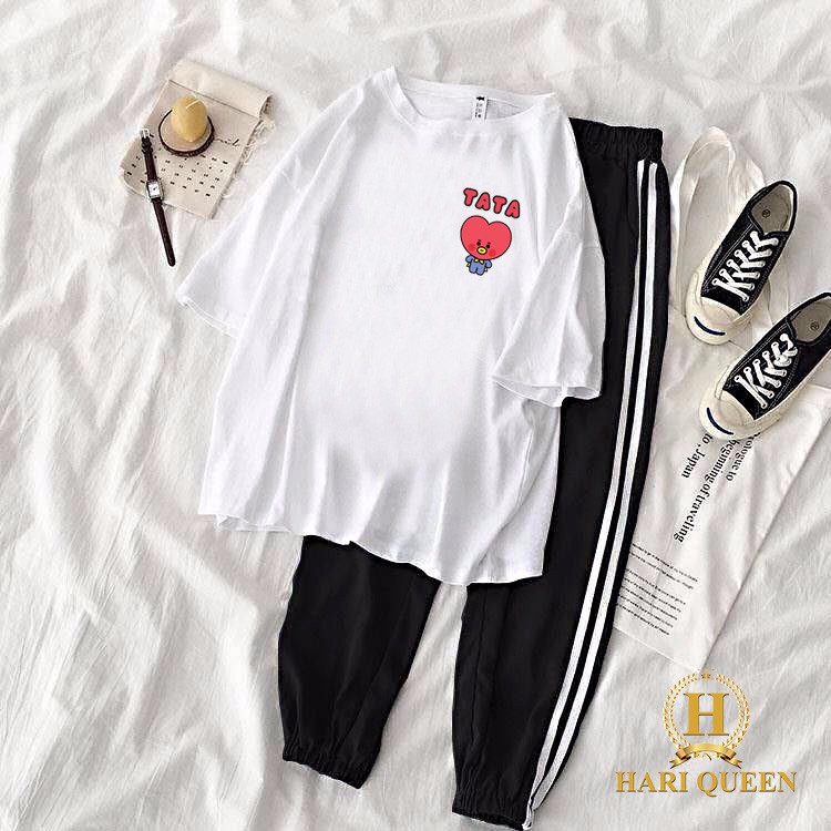Giới thiệu Sét áo logo nhân vật ngộ nghĩnh kèm quần sọc HARI0420