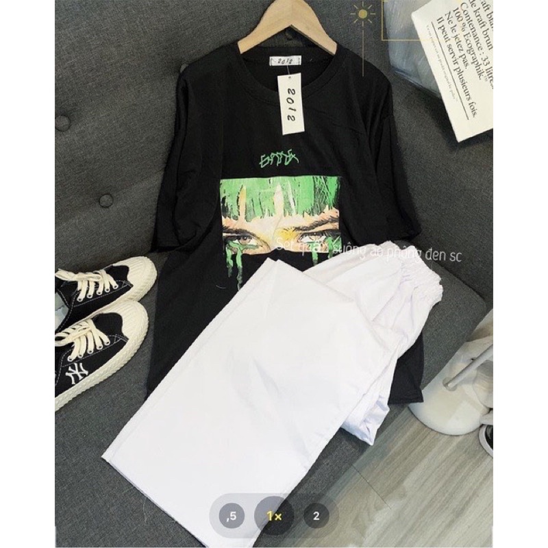 Giới thiệu Set áo phông mắt cô gái quần kaki trắng TH6