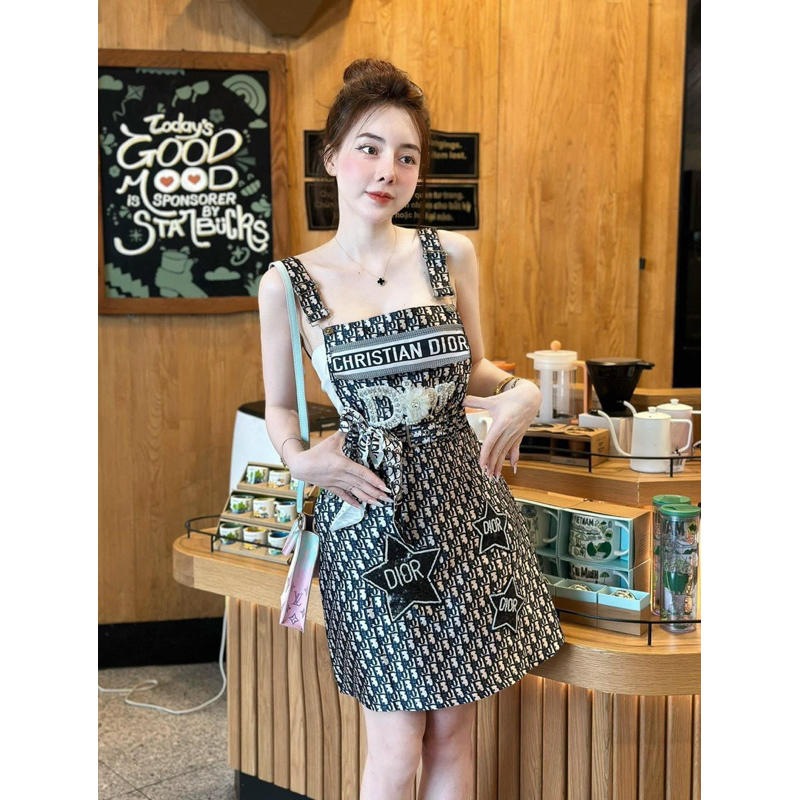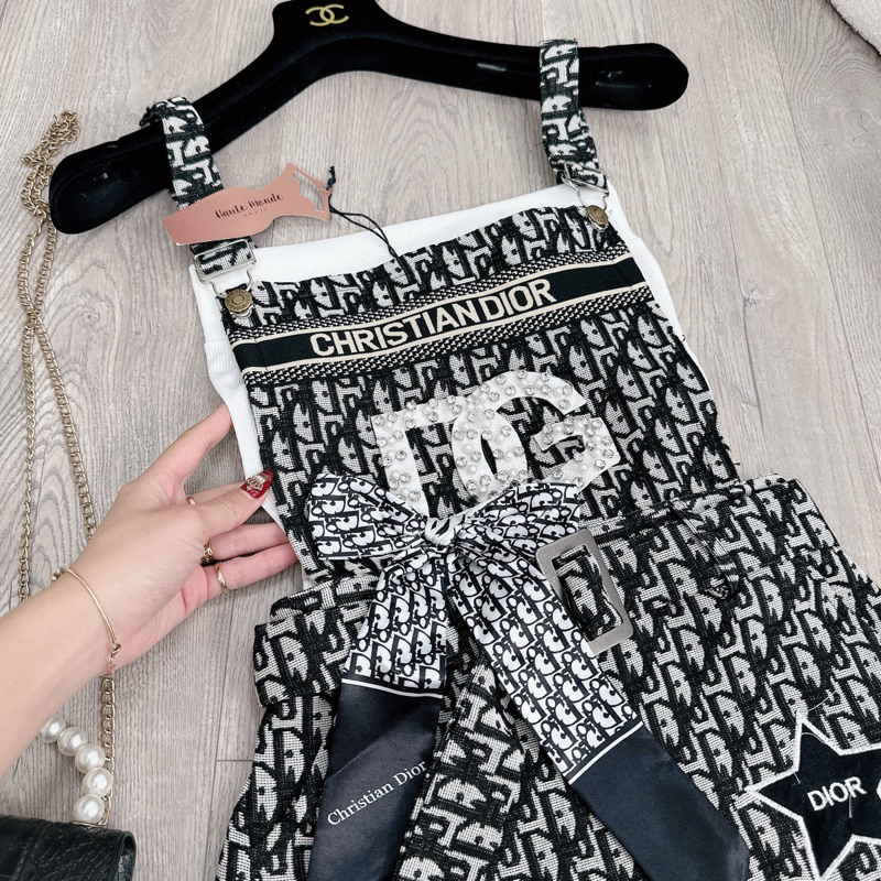 Giới thiệu [ 𝐅𝐑𝐄𝐄 𝐒𝐇𝐈𝐏 ] Set áo quây mix váy yếm Dior kèm đai siêu xinh Áo quây bozip ôm dáng Váy yếm vải dệt QC cao cấp, kp in