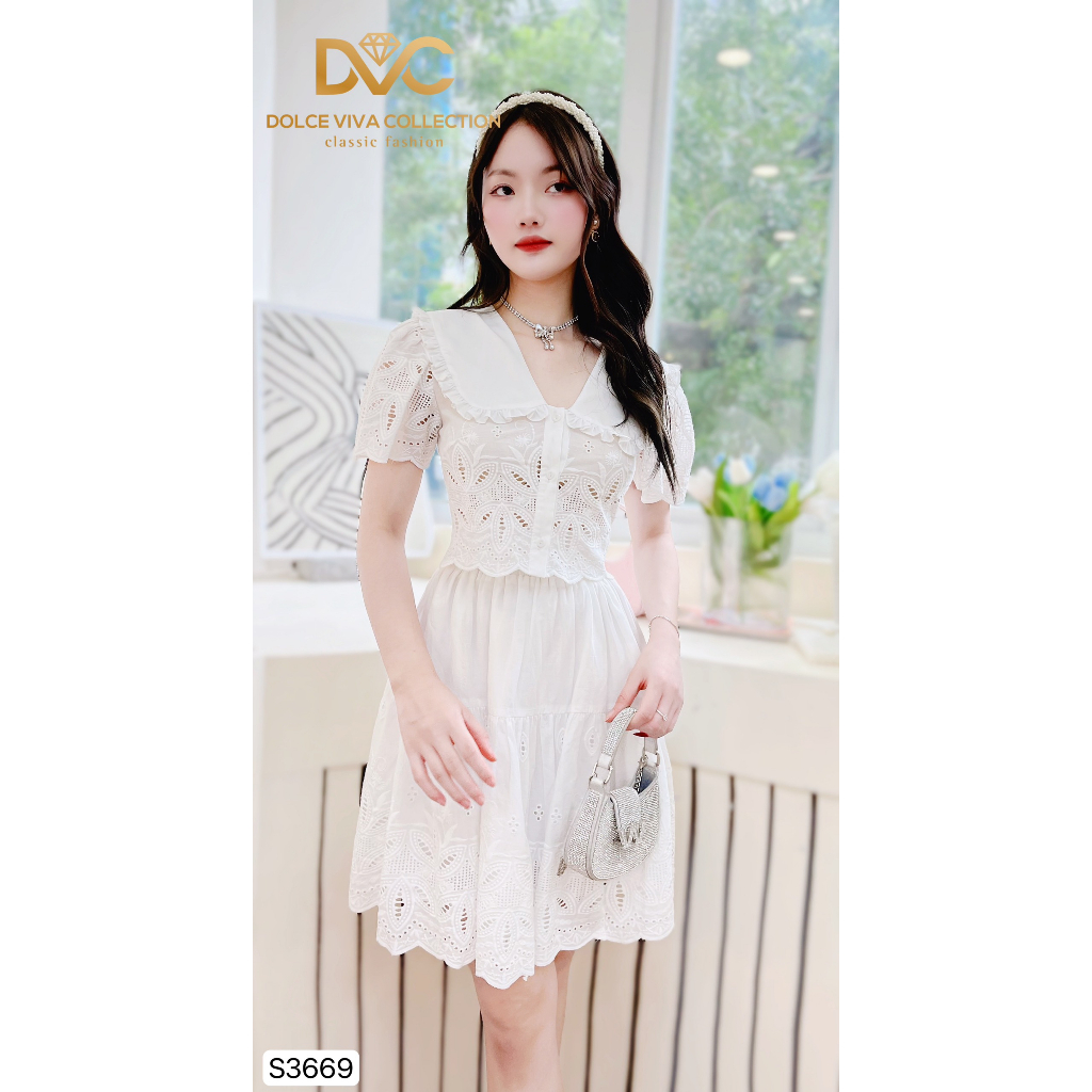 Giới thiệu SET ÁO REN CỔ BÈO KÈM CHÂN VÁY REN S3669 - DVC