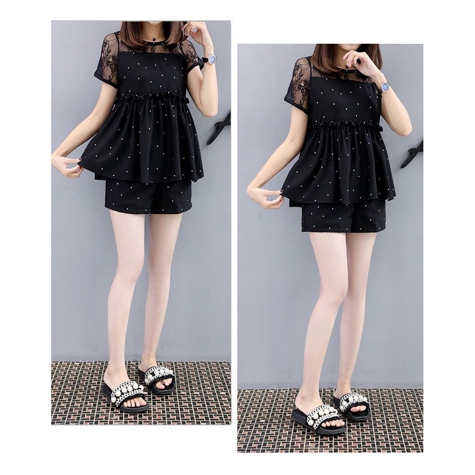 Giới thiệu Set Áo Ren Tay Lỡ Phối Ren + Quần Short Ống Rộng Xẻ Tà Thời Trang Mùa Hè C7647 Cho Nữ