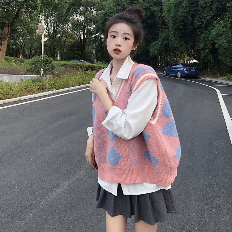 Giới thiệu Set áo sơ mi + áo khoác dệt kim không tay mềm mại thời trang dành cho nữ