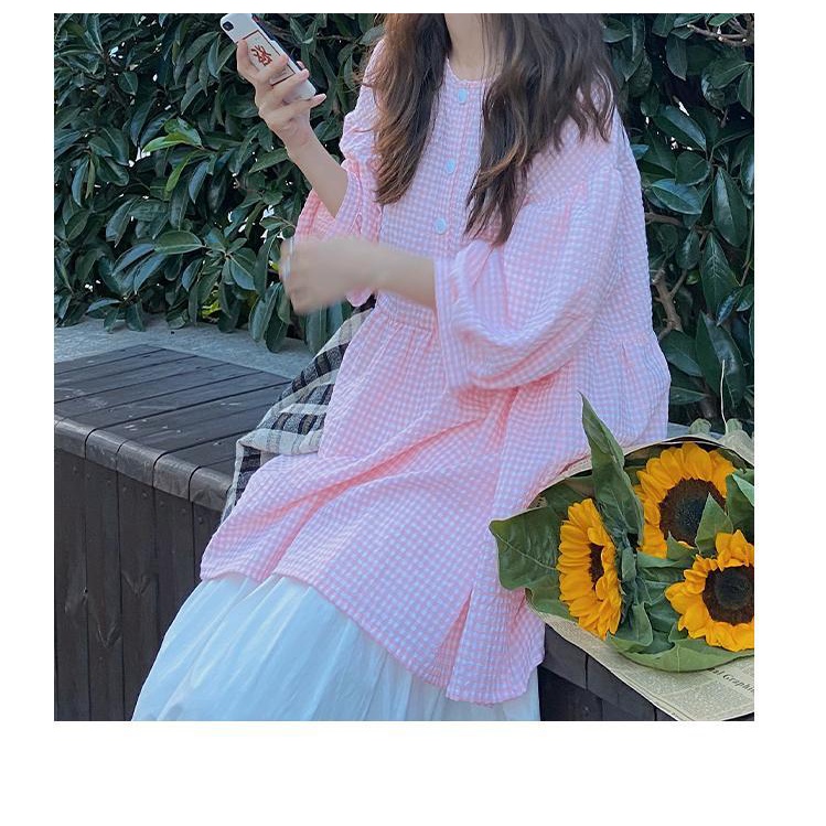 Giới thiệu Set Áo Sơ Mi Caro + Chân Váy Trắng Phong Cách Hàn Quốc Mới Cho Nữ