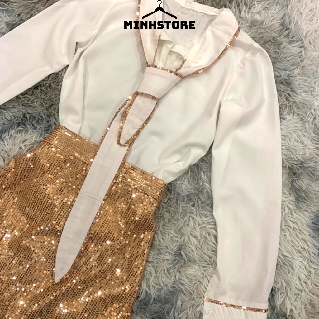 Video giới thiệu sản phẩm Set áo sơ mi chân váy kim sa quyến rũ. Nguồn: Shopee.