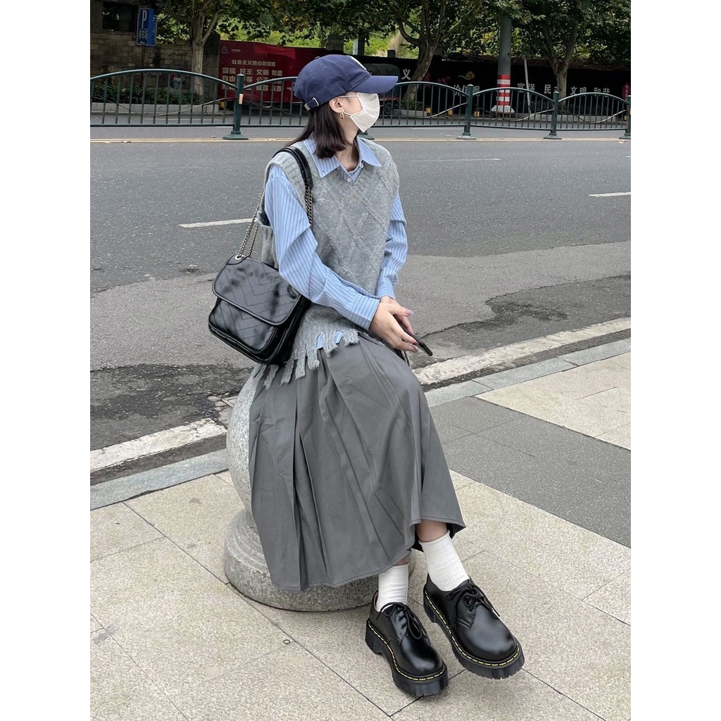 Giới thiệu Set Áo Sơ Mi Kẻ Sọc + Áo Khoác Len Không Tay Thiết Kế Mới Thời Trang Mùa Thu Dành Cho