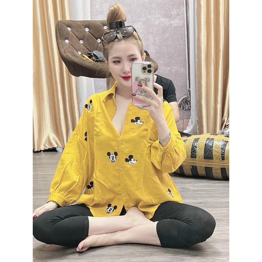 Giới thiệu Set áo sơ mi quần legging dài, áo in hình chuột mickey cho nữ mặc nhà, mặc đi chơi, đủ màu cực tôn da, siêu xinh