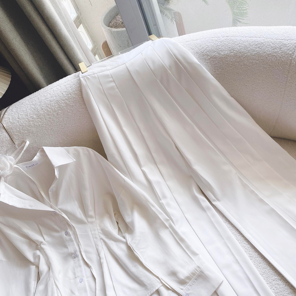 Giới thiệu SET ÁO SƠ MI TRẮNG CHIẾT EO KÈM CHOKER HOA + QUẦN SUÔNG XẾP LY
