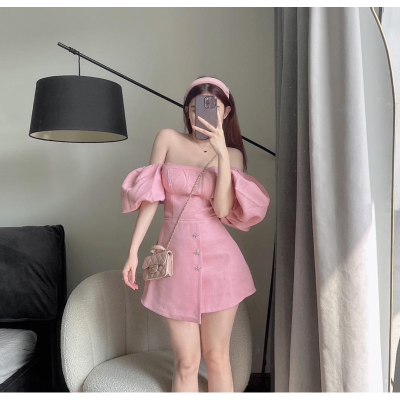 Giới thiệu Set Áo Tay Bồng Cúp Ngực Mix Chân Váy Chữ A Nơ Đá Hàng 2 Lớp, Set Bộ Nữ Croptop Sang Chảnh Có Ảnh Thật