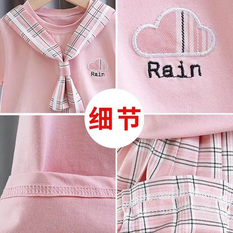 Giới thiệu Set Áo Thun Cotton + Chân Váy Caro Xếp Li Cho Bé Gái 2-7 Tuổi