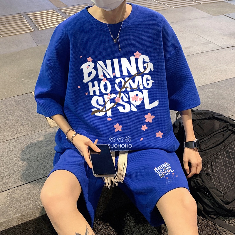 # Bộ đồ nam # Áo phông ngắn tay # Quần short # Thời trang # Giải trí # Rộng rãi # Mới # Xu hướng # Nóng bức # Đã in # Cổ áo tròn