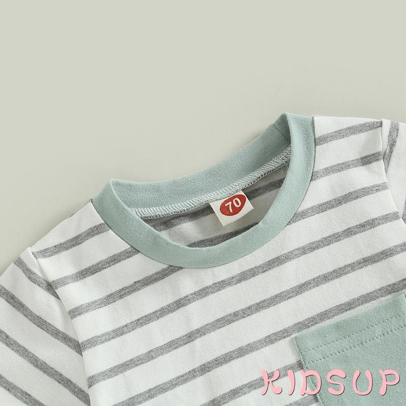 Giới thiệu Set Áo Thun Ngắn Tay Kẻ Sọc + Quần Short Lưng Thun Cho Bé Trai 1 Tuổi