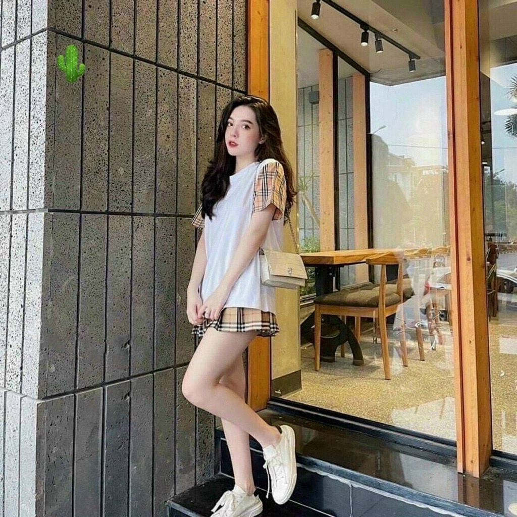 Giới thiệu Set áo thun phối bbr kèm chân váy ngắn xòe kẻ caro ( có quần trong)