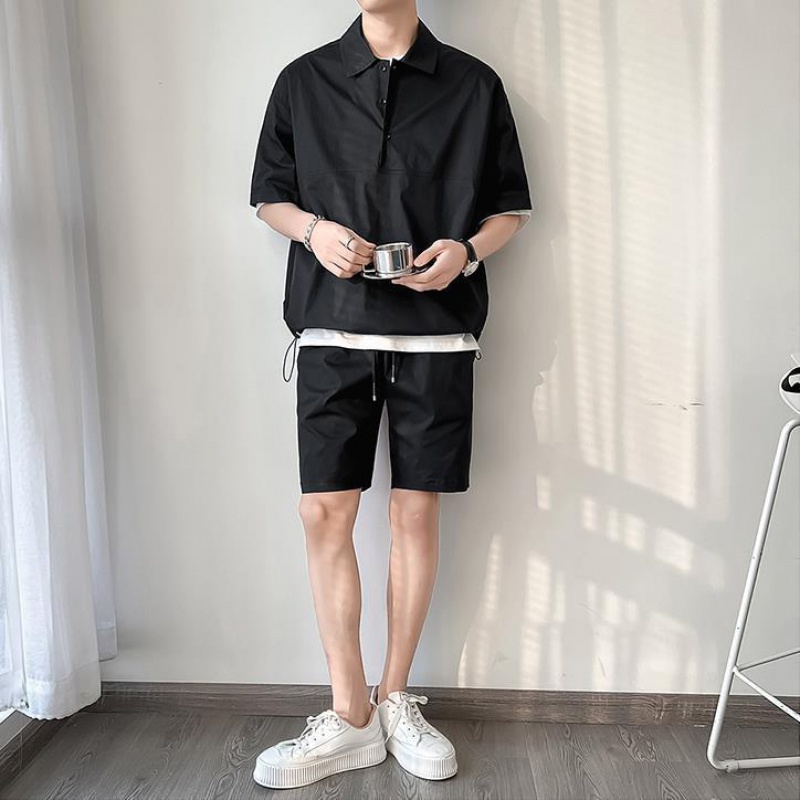 Giới thiệu Set Áo Thun polo Tay Ngắn Màu Trơn Phối Quần Short Dáng Rộng Thời Trang Mùa Hè Phong Cách Hàn Quốc Cho Nam