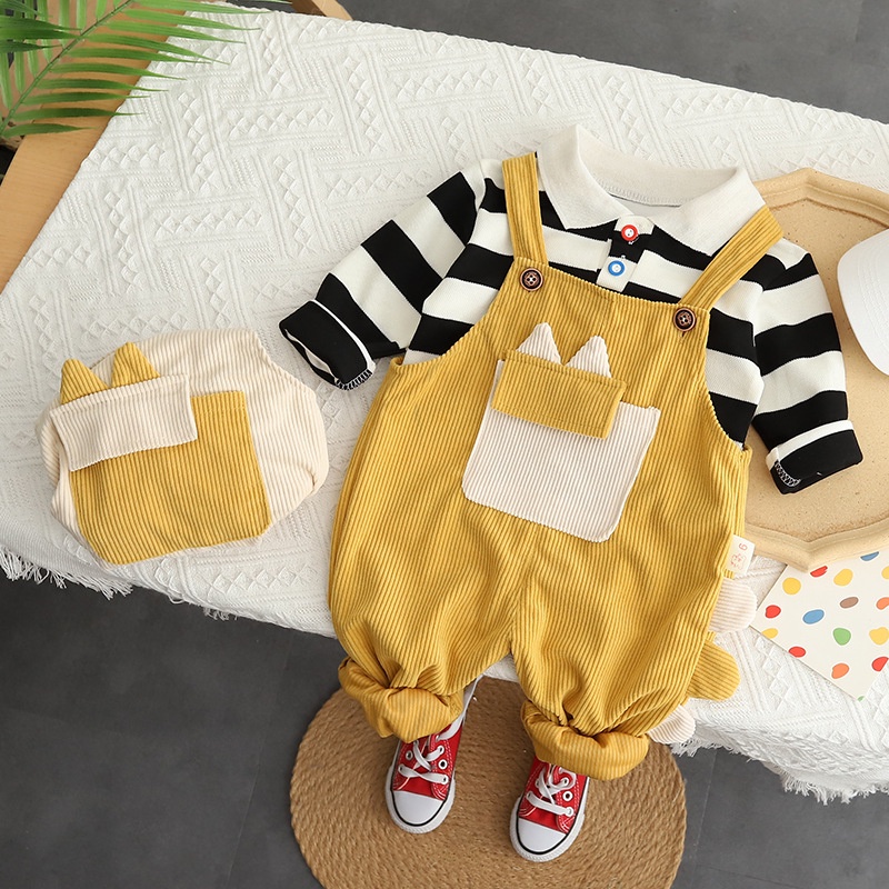 Giới thiệu Set áo thun sọc yếm kaki dài cho bé gái bé trai 1 2 3 4 tuổi MINTSCLOSET - YE5011-YE5050-YE5054-YE5062-YE5064-YE5061