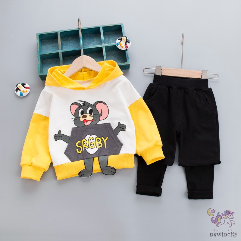 Miêu tả sản phẩm: Thông tin chi tiết: 1. Chất liệu: 100% cotton 2. Điểm thiết kế: Bộ đồ trẻ em được thiết kế với họa tiết hoạt hình mèo chuột, chất liệu vải rất thoải mái và mềm, thoáng mát. 3. Kiểu dáng: vừa vặn, thích hợp cho bé trai 0-5 tuổi mặc xuân thu, kiểu dáng thoải mái, tiết kiệm chi phí, 3 màu tùy chọn, đáng để mua 4. Mẹo giặt: giặt tay / máy trong nước lạnh và vắt khô. không tẩy trắng. 5. Chiếc quần sành điệu sẽ là món quà tốt cho gia đình, bạn bè và những người thân yêu.