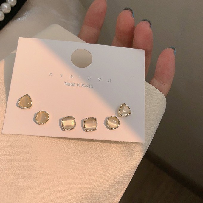 Giới thiệu Set ba đôi khuyên tai bạc S925 hình học đơn giản dành cho nữ