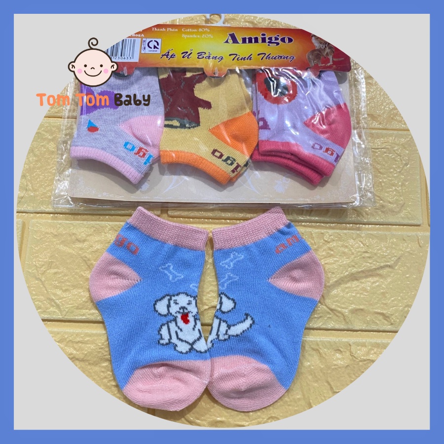 SET BỘ 3 ĐÔI Tất Sơ Sinh Ánh MinhVớ Sơ sinh AMIGO sơ sinh - 9 tháng| chất vải mềm mại, co giãn tốt, ấm chân bé