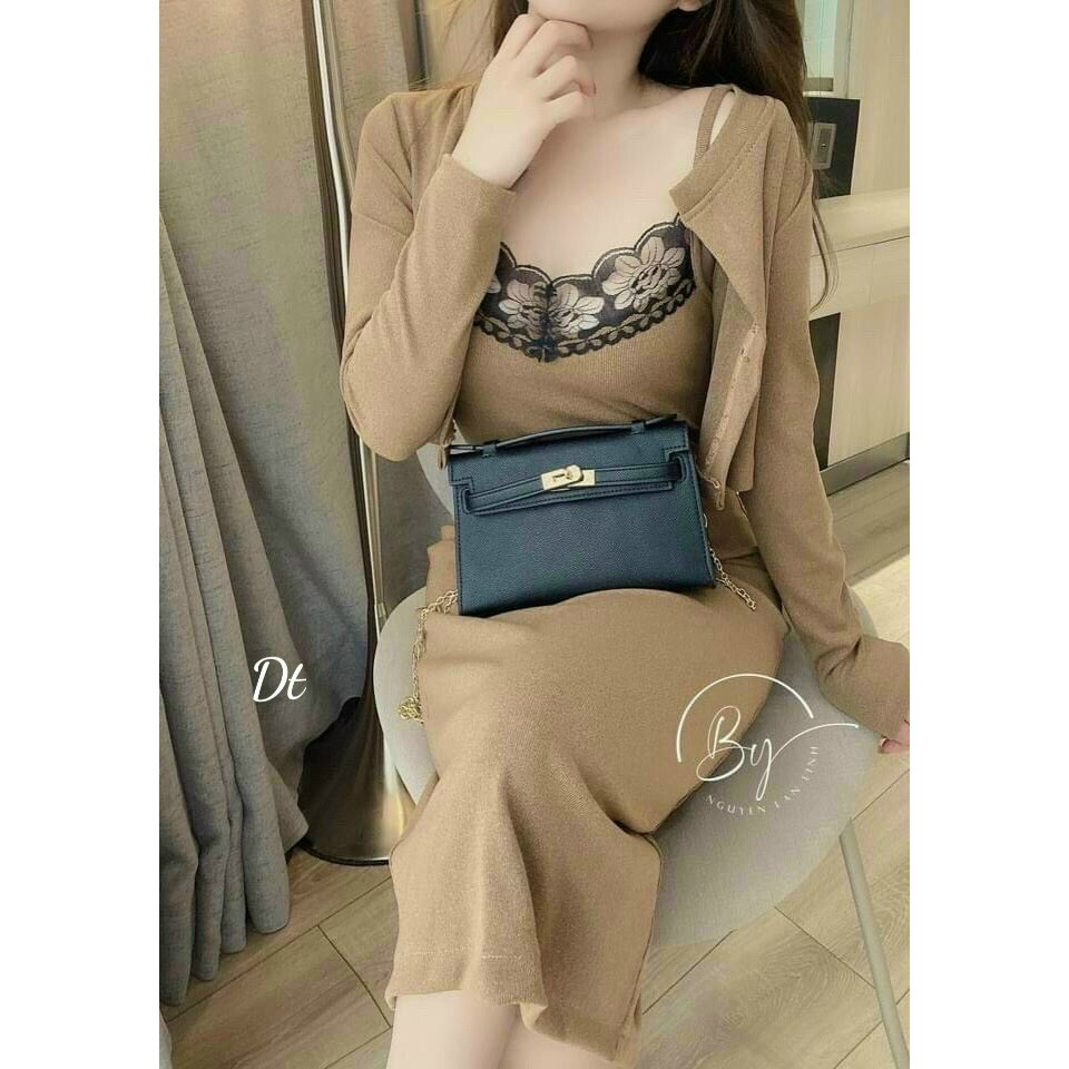 Giới thiệu Set Bộ Áo Hai Dây Phối Ren Và Chân Váy Dài Kèm Áo Khoác Ngoài Rose Fashion