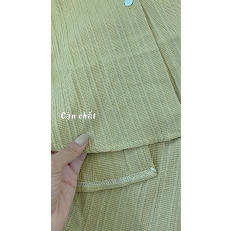 Set áo sơ mi xẻ lưng kèm quần short ống rộng chất đũi gân_ Linhchi.studio ⭐ THÔNG TIN SẢN PHẨM - Set bộ là 1 items chắc chắn không thế thiếu trong tủ đồ của mỗi cô nàng fashionista bởi tính ứng dụng tuyệt vời của nó: Mặc xuyên đông sang hè được luôn, rất tiện dụng. Mặc đi học,đi làm hay đi chơi đều đẹp các nàng cứ sắm cả 2 màu nha - Chất liệu: Set áo sơ mi xẻ lưng kèm quần short ống rộng chất đũi gân nhà Linh Chi Studio được may từ vải đũi gân siêu mềm mịn,chuẩn form,đứng dáng - Màu sắc: Xanh bơ/trắng + Size S: 40-50kg + Size M: 51-62kg Khách có thể nhắn tin với Linh Chi Studio để được tư vấn ạ.