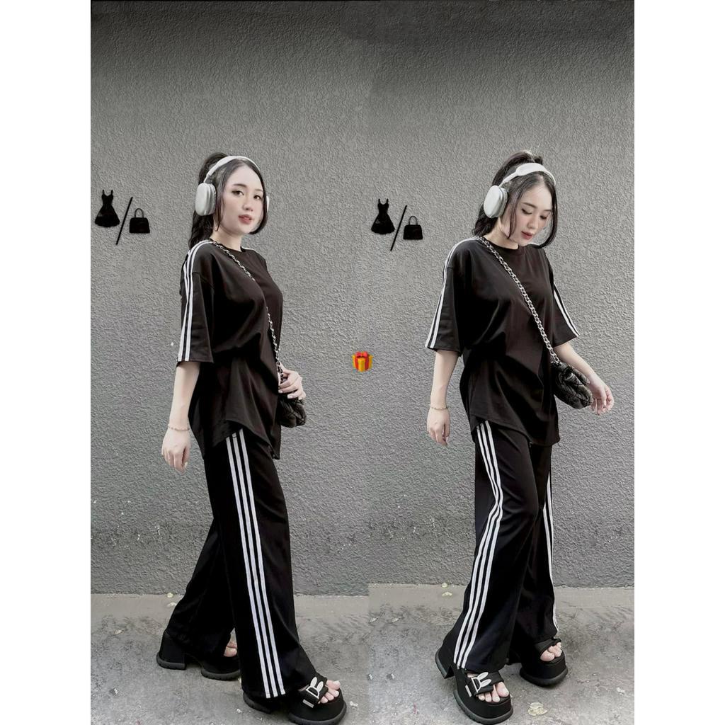 Giới thiệu Set bộ áo thun form rộng sọc tay quần dài sọc 3 sọc chất thun gân