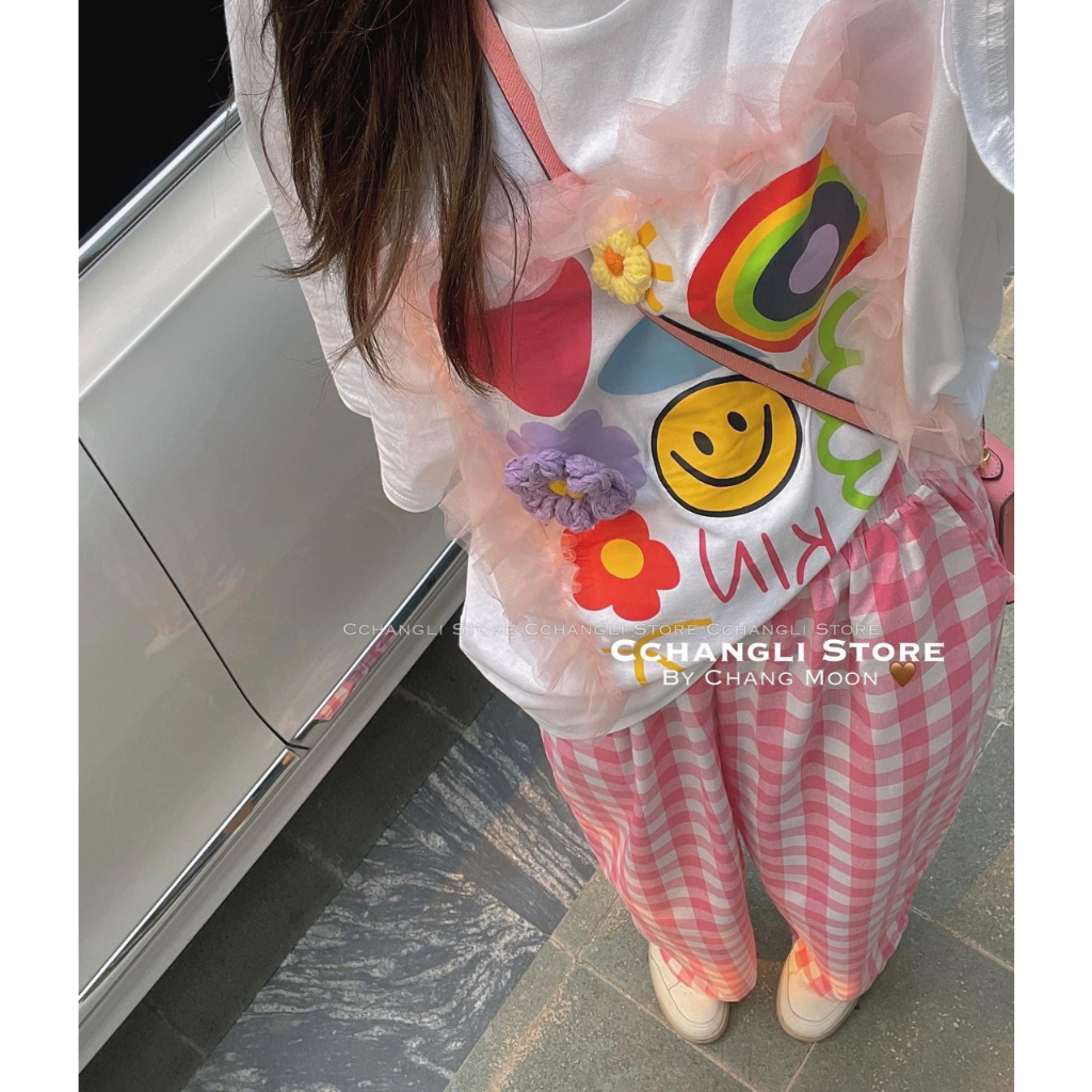 Giới thiệu Set bộ áo thun hoa bèo mix quần hồng kẻ xuông