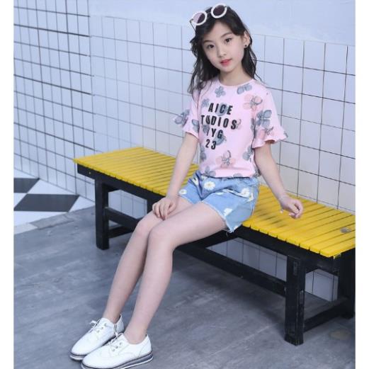 Giới thiệu Set bộ áo thun và quần jean cho bé gái đi chơi dự tiệc phong cách Hàn Quốc từ 13-38kg BBG010