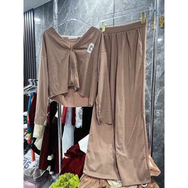 Giới thiệu Set Bộ Chữ G Len Tăm Áo Dài Tay Croptop Kèm Quần Suông Hàng QCCC Cá Tính Sang Chảnh Cho Nữ Đi Chơi Đi Dạo ATN CLOTHING