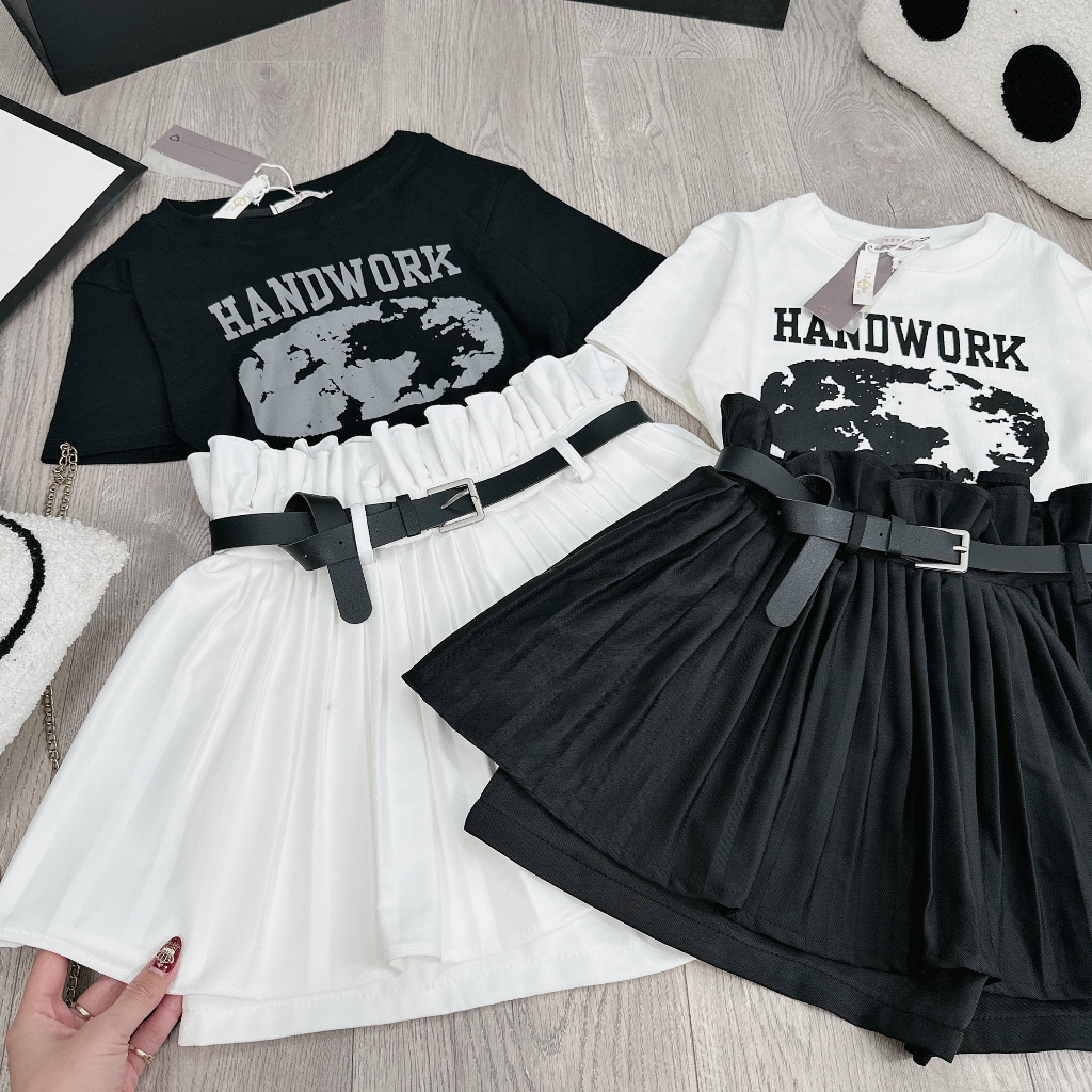 Giới thiệu Set Bộ Đồ Nữ Áo Croptop Ôm Body HANDWORK Ngắn Tay Mix Chân Váy Xòe Dập Ly Kèm Đai Freesize