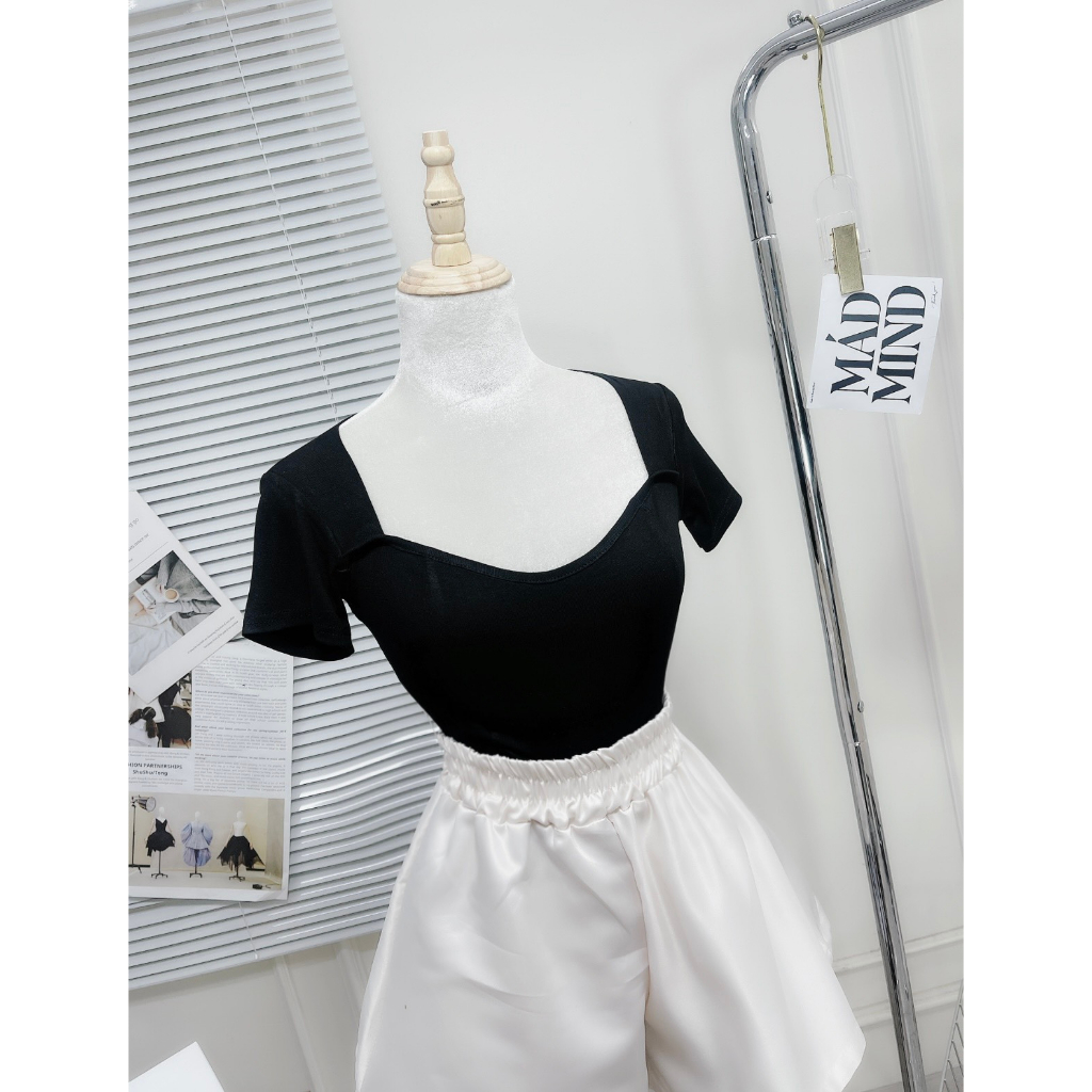 Giới thiệu Set Bộ Đồ Nữ Áo Zip Đen Ôm Body Cổ Vuông Ngắn Tay Mix Quần Sooc Đùi Ống Rộng Freesize