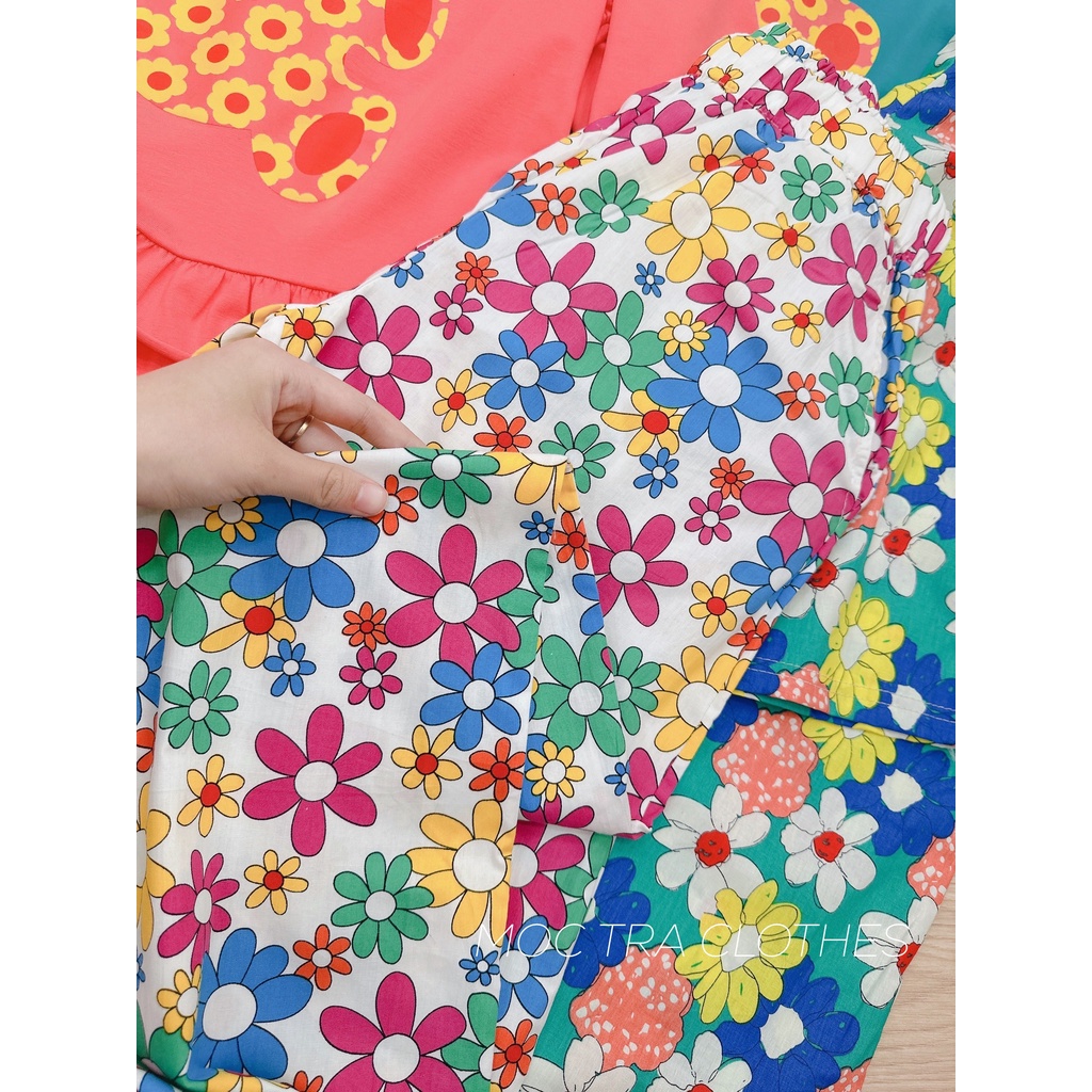 Giới thiệu Set bộ đồ nữ mặc nhà Quảng Châu thiết kế áo phông chân bèo và quần hoa ống suông rộng rẻ đẹp siêu xinh