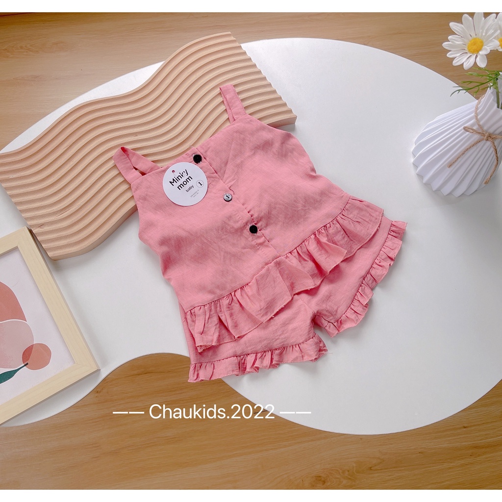 Áo 2 dây bé gái, set bộ đũi bèo cúc cài thật cho bé