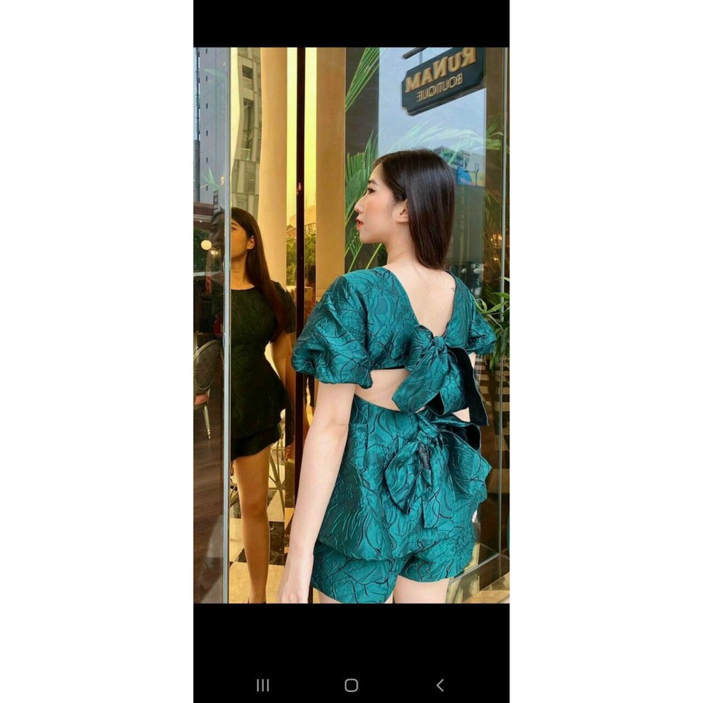 Giới thiệu Set bộ gấm hoa áo buộc nơ lưng và quần ngắn