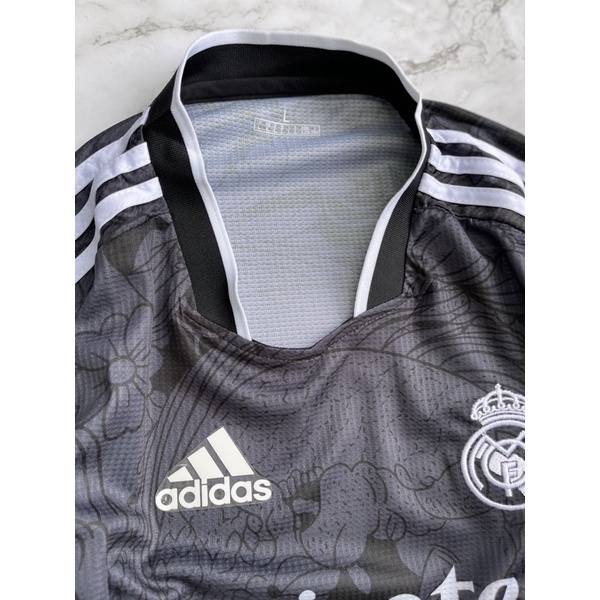 Giới thiệu set bộ quần áo thể thao bóng đá vải gai thái clb real áo đen quần đen 2022