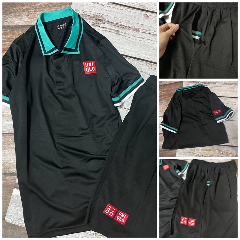 Thể Thao & Du Lịch > Thời Trang Thể Thao & Dã Ngoại > Bộ Đồ Thể Thao > Set Bộ quần áo thể thao thời trang đi chơi tennis cầu lông vải gai lỗ thể thao uniqlo áo đen quần đen có túi logo thêu