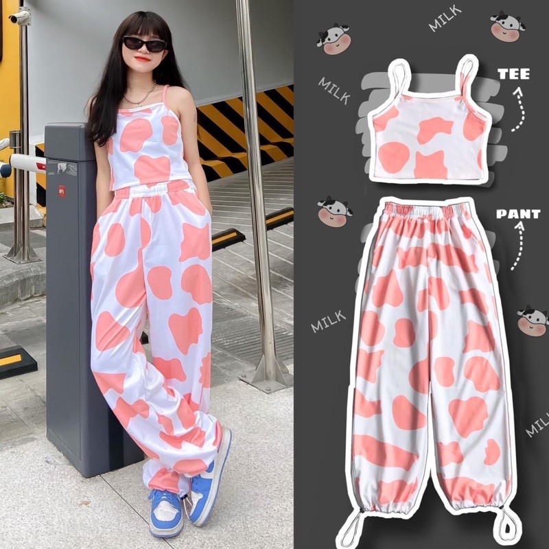 Giới thiệu Set Bò Sữa Cartoon Pant CropTop Ảnh Thật