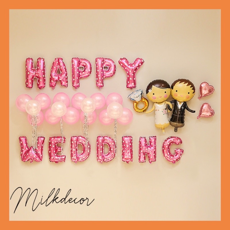 🍃🍃 Mô tả sản Phẩm🍃🍃🍃 Phân loại set bóng gồm: - 1 bộ chữ happy wedding màu hồng chấm - 1 nhẫn - 1 đôi cô dâu chú rể to - 2 trái tim hồng nhỡ - 20 bóng trắng nhũ mix hồng nhũ