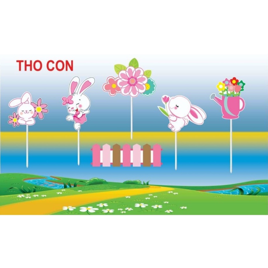 Set cắm giấy thỏ con trang trí bánh kem sinh nhật